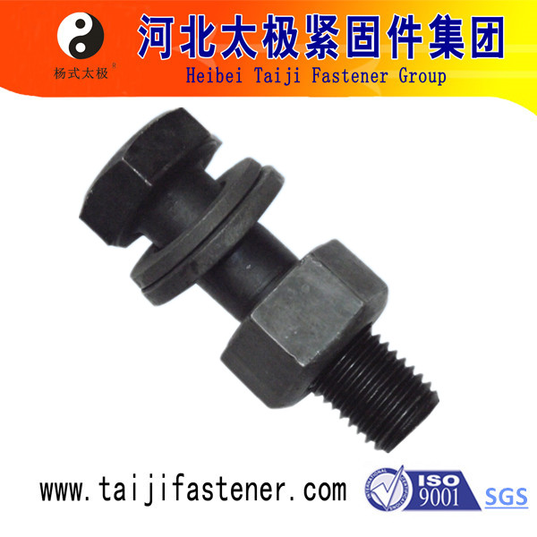 高強度螺栓連接副組裝時,螺母帶圓臺面的一側應朝向墊圈有倒角的一側。對于大六角頭高強度螺栓連接副組裝時,螺栓頭下墊圈有倒角的一側應朝向螺栓頭。大六角高強度螺栓是承壓型的。